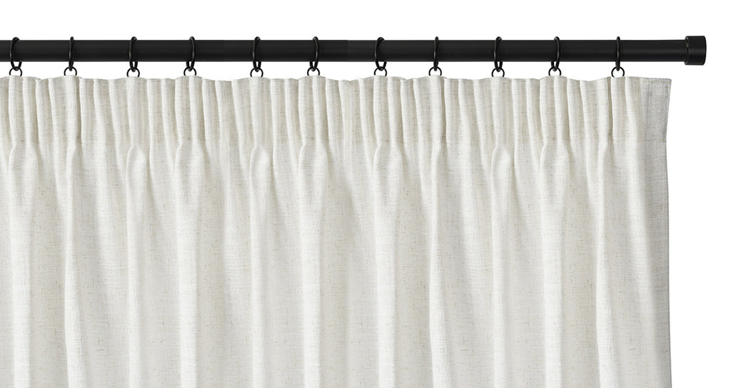 - Pinch pleats are more gathered than other headings and have permanent sewn-in pleats for a more luxurious look. It is also called Double Pleated.