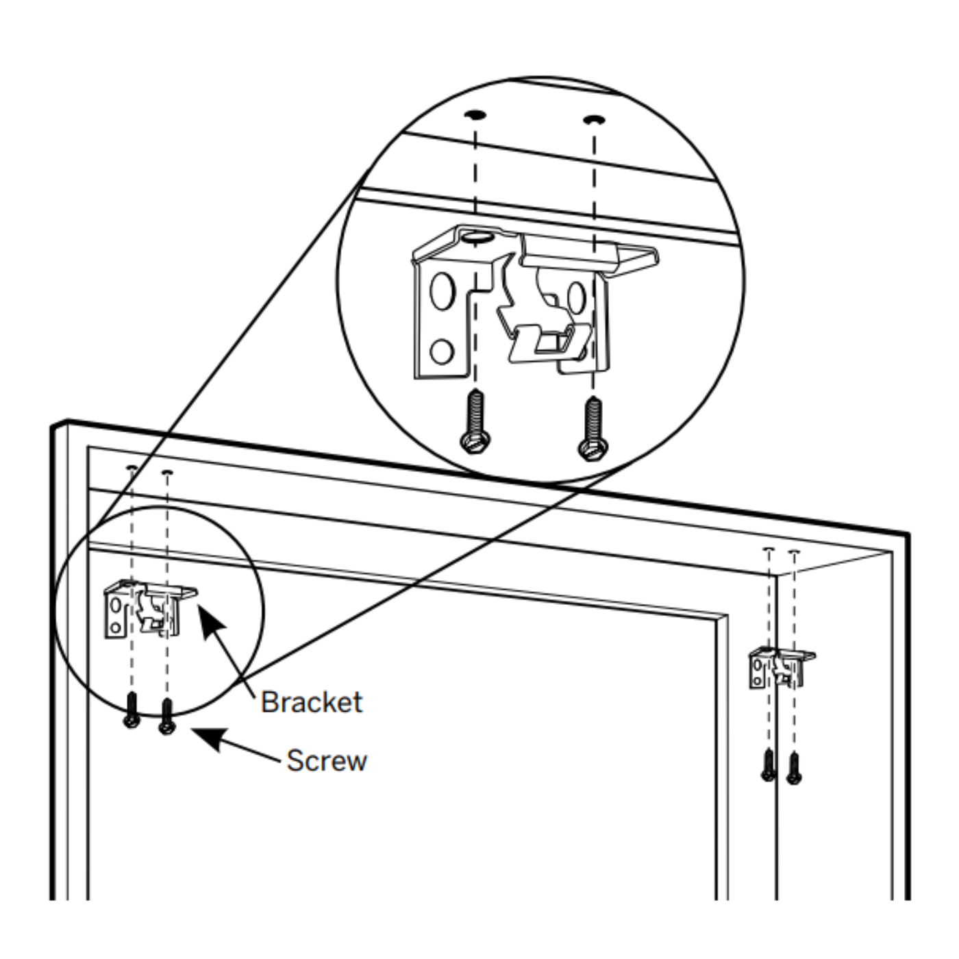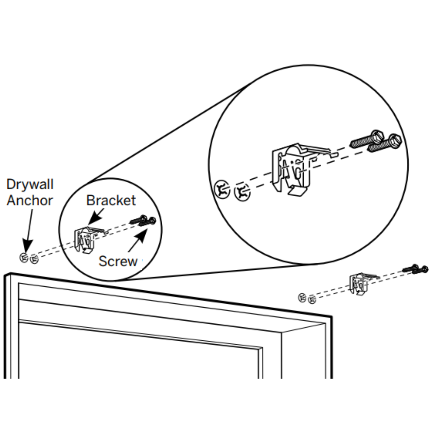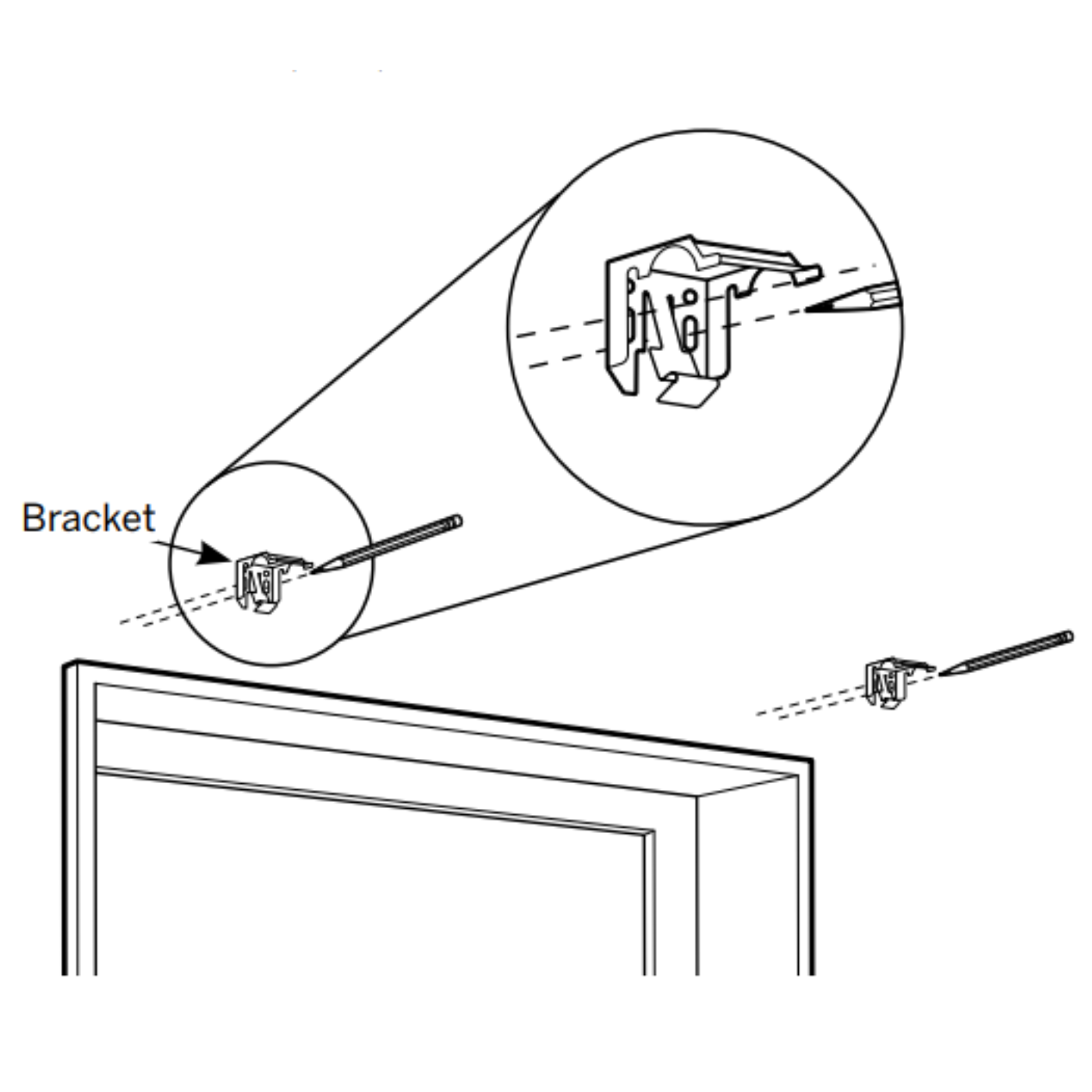- Place the first bracket in the upper corner of the window frame, flush with the wall. Mark screw locations and repeat on the other side, ensuring both brackets are even.