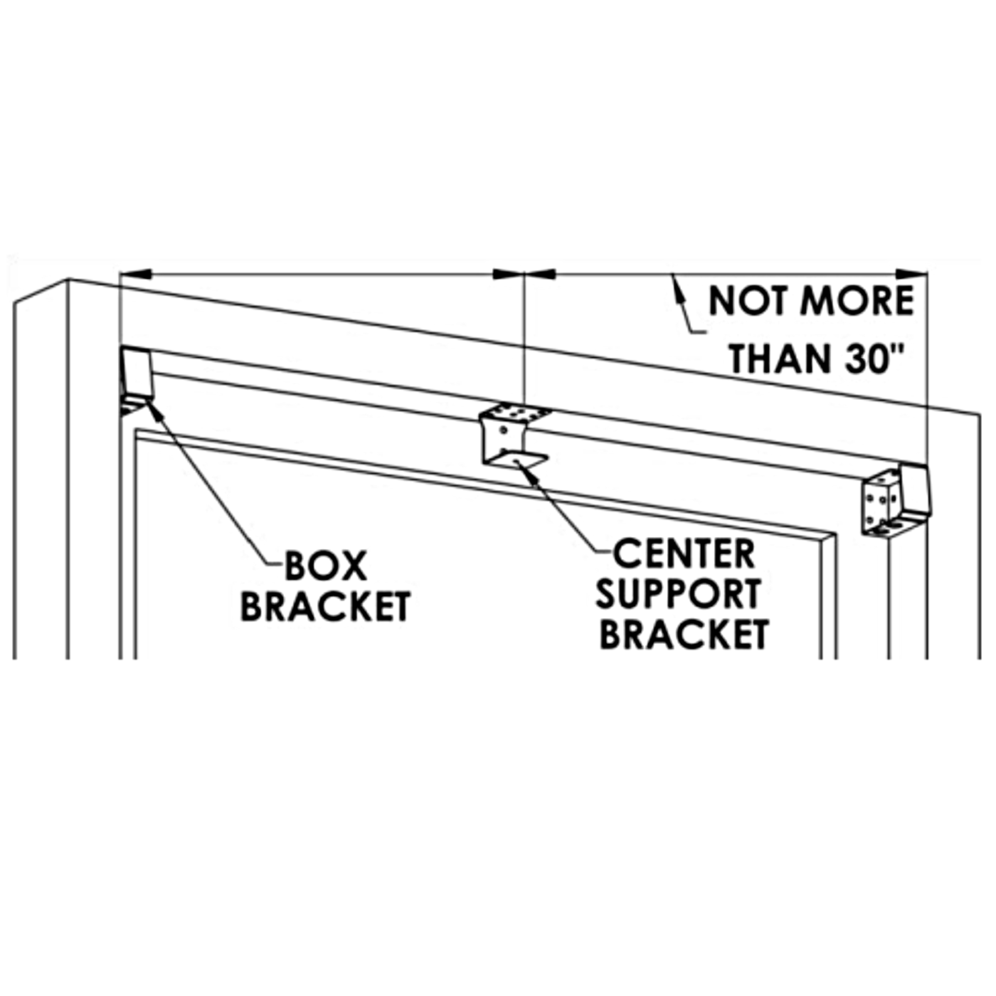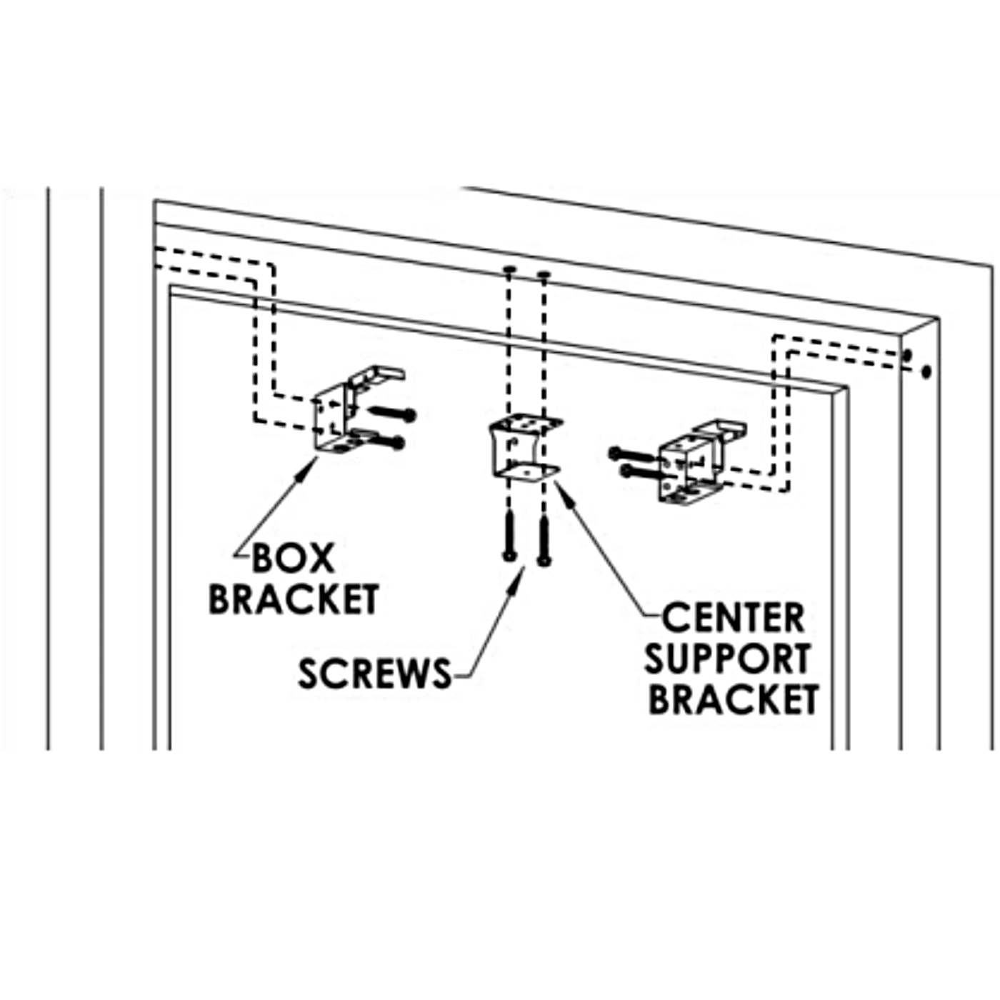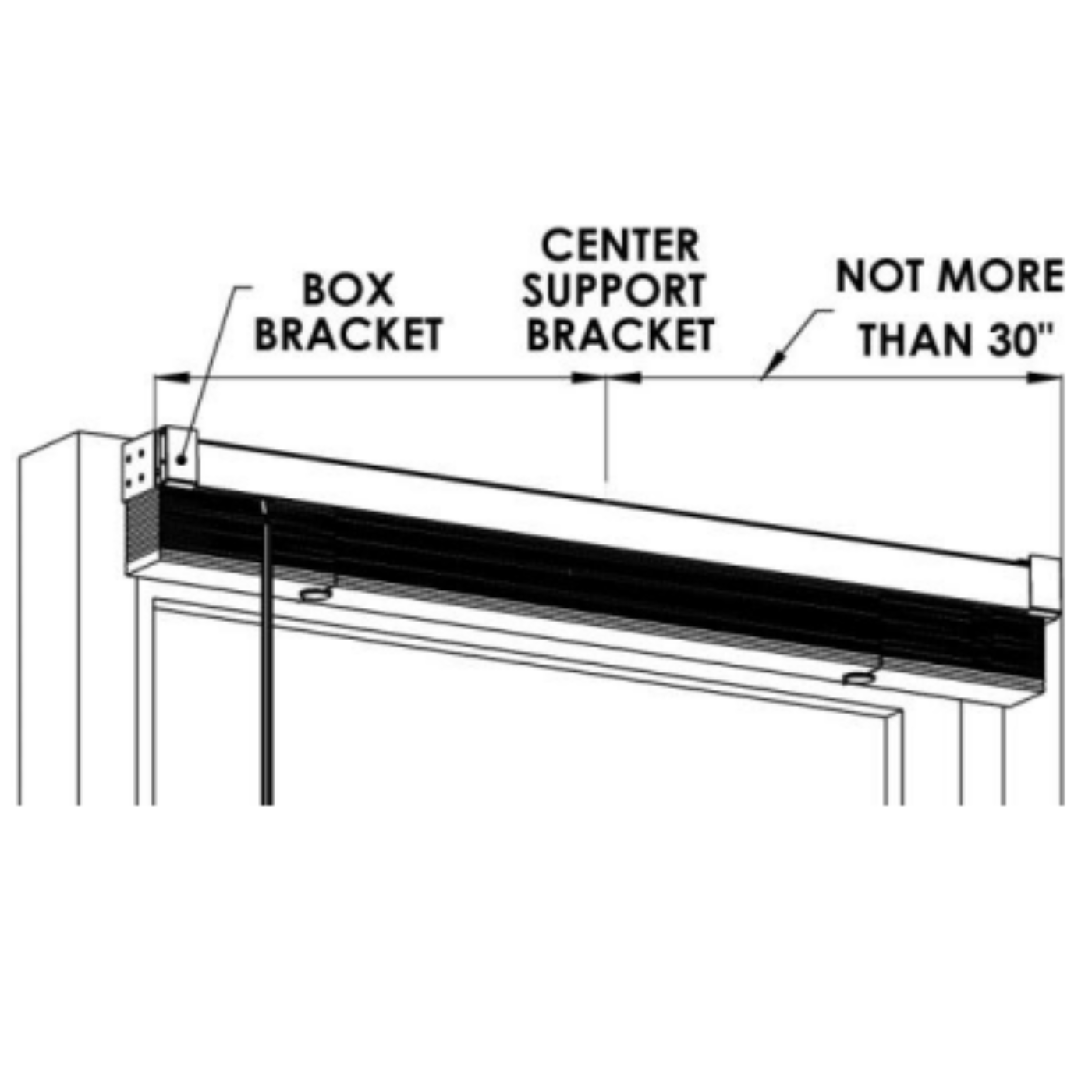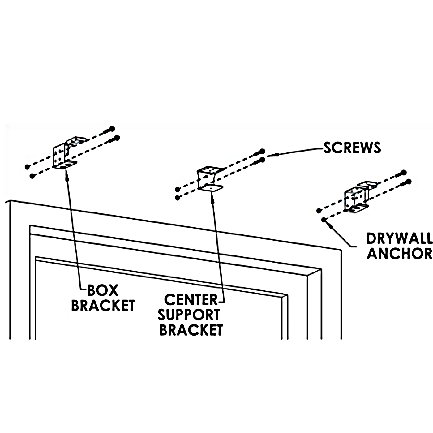 - Sort and prepare end box and center support brackets.Use a level to align brackets at each end of the headrail and mark positions.