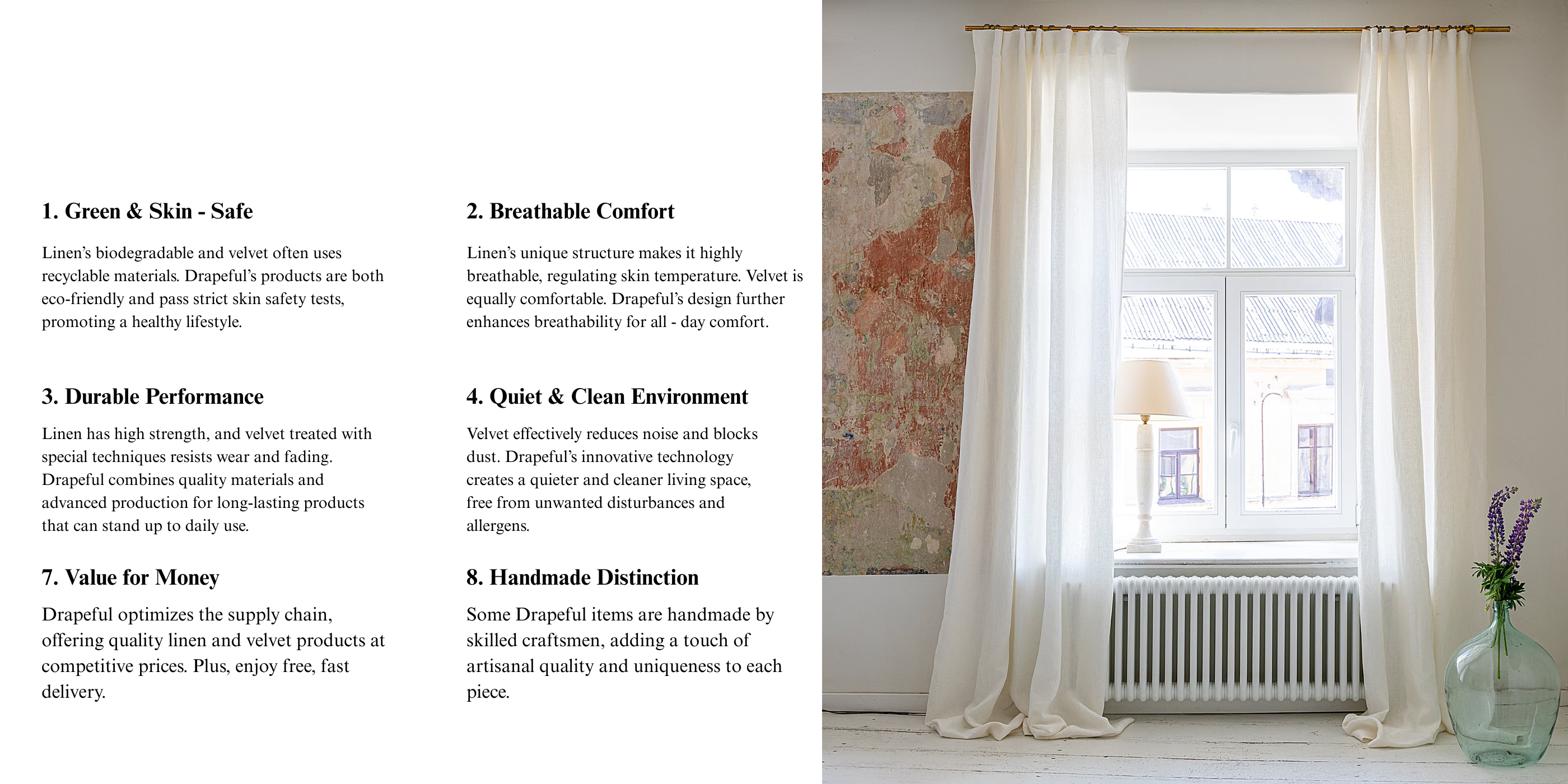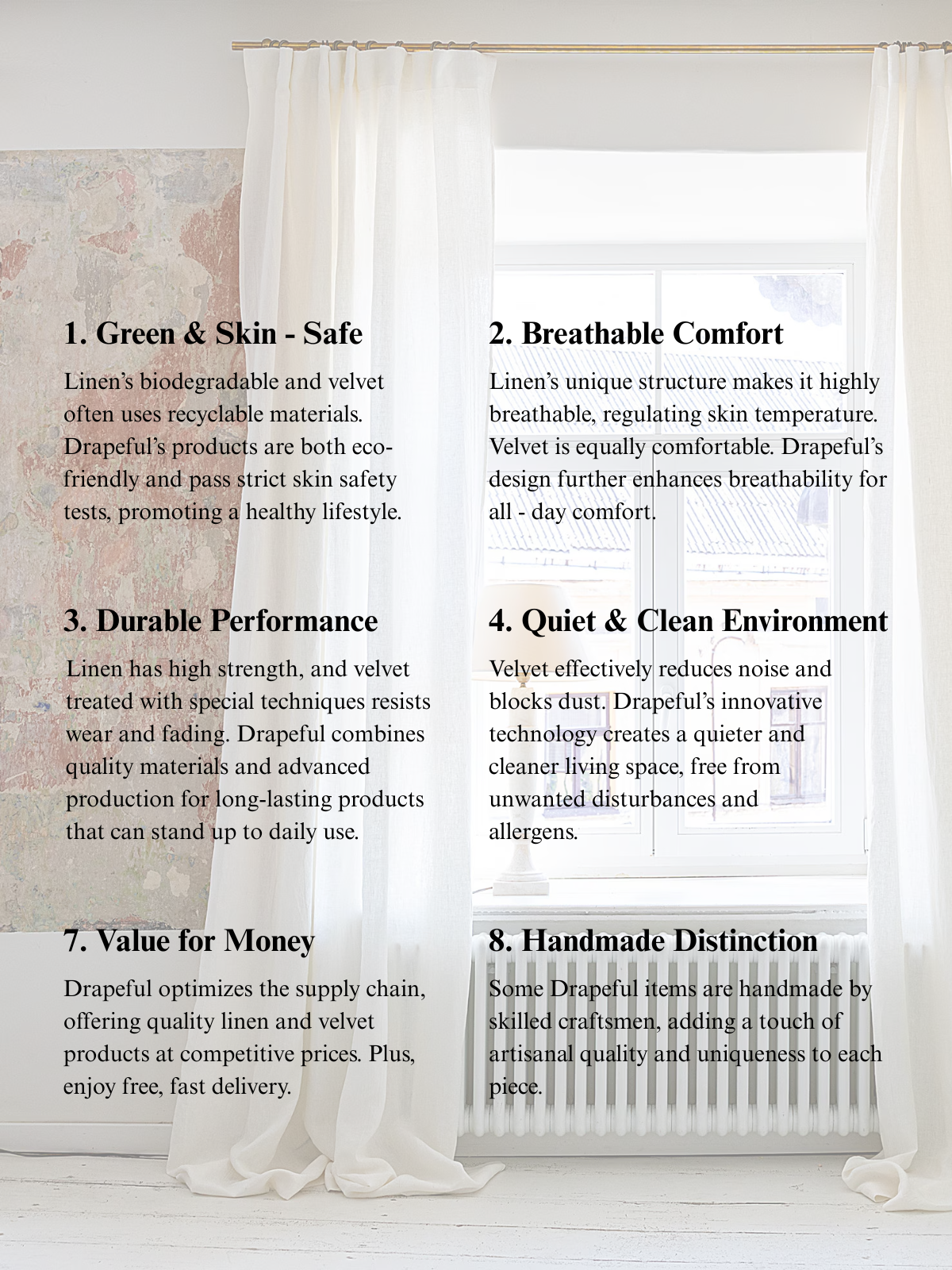 - Customized Lining: Prolonged exposure to sunlight may cause fading and deterioration of curtain fabrics. Therefore, using blackout curtains or adding curtain linings on windows exposed to direct sunlight can reduce direct sun exposure.