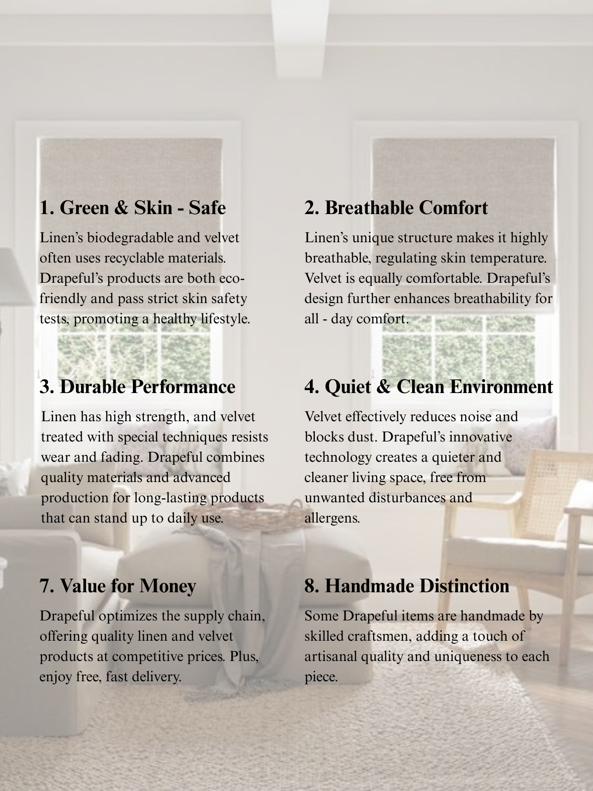 To ensure fabric meet your expectation, we encourage you to order Fabric Sample Booklet before ordering customized drapes finally.