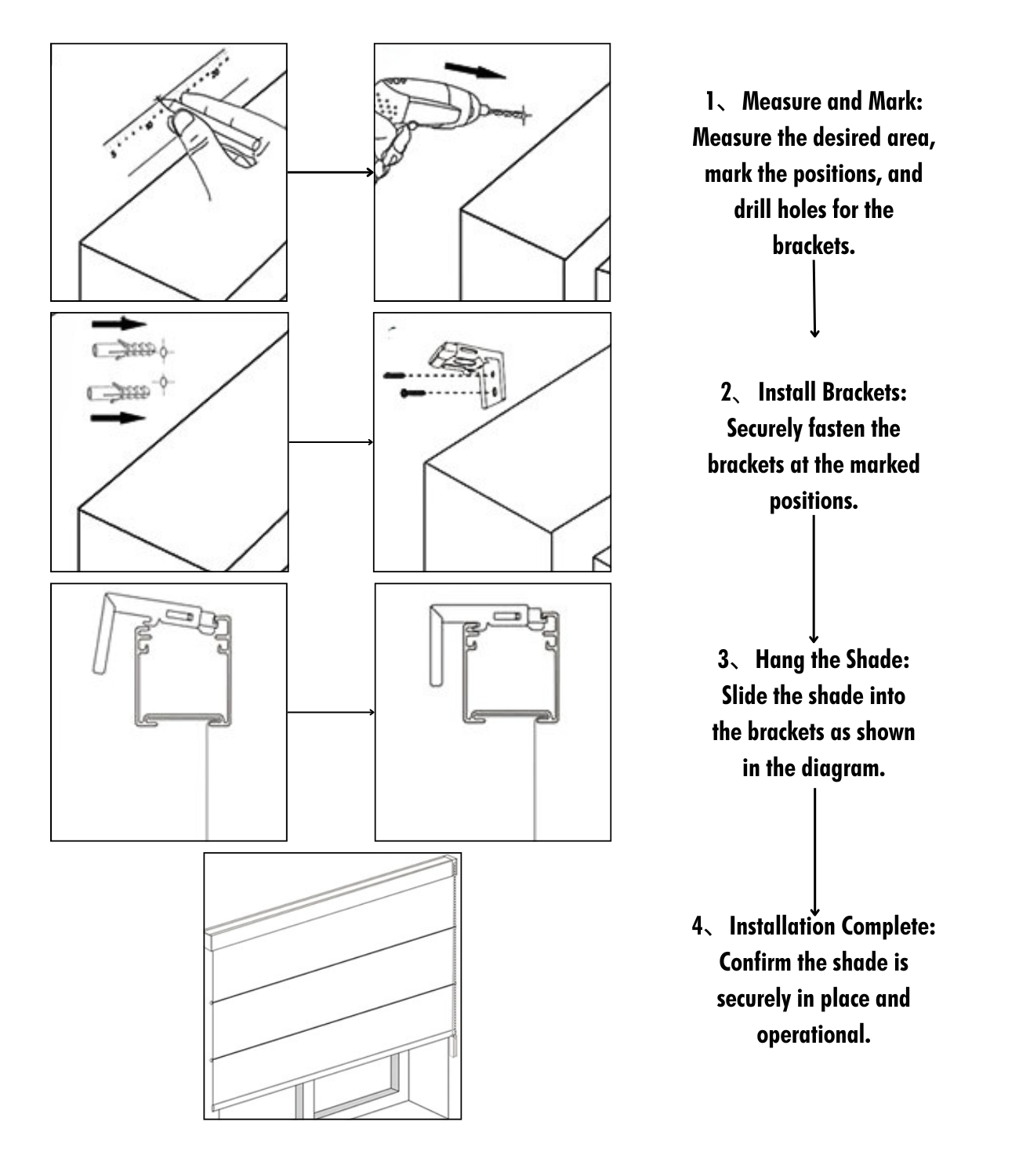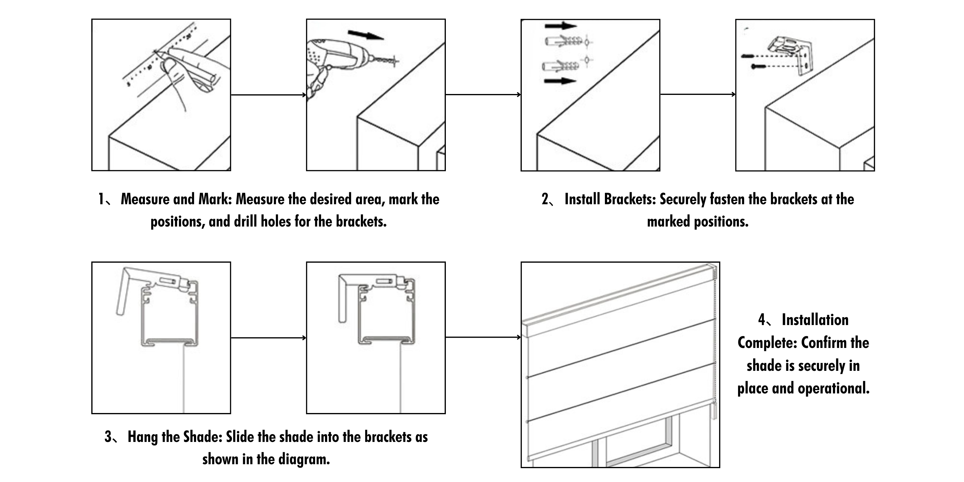 Measure the full width of the wall where the shade will be installed, from edge to edge. Then, measure the height from the top mounting point to the desired bottom length.